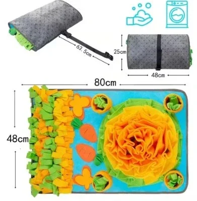 Geef je hond een vrolijke uitdaging met dit speelse zonnebloem snuffelkleed! Het kleed zit vol verschillende verstopplekjes, flapjes en texturen waardoor je hond lekker kan snuffelen, zoeken en ontdekken. Het ingebouwde pieper-element zorgt voor extra prikkel en speelplezier, ideaal tegen verveling en perfect voor dagelijkse mentale stimulatie.