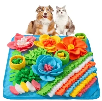 Geef je hond een vrolijke uitdaging met dit speelse Bloemen snuffelkleed! Het kleed zit vol verschillende verstopplekjes, flapjes en texturen waardoor je hond lekker kan snuffelen, zoeken en ontdekken. Ideaal tegen verveling en perfect voor dagelijkse mentale stimulatie.